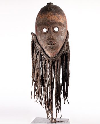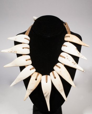 Fashioned by hand from a single piece of local hardwood, this oval wooden tray was used to present food and fruits when receiving guests. This particular tray retains its raw texture, and has a deeper profile than most. This style and shape of tray is peculiar to the Mentawaii grouping of islands off the west coast of Sumatra. Villages in Mentawai are traditionally located deep in the forest along rivers, and life revolves around hunting, gathering and the trade of forest products.The Siberut Mentawai subsist primarily on starch extracted from sago palm. They also cultivate taro, cassava, and an assortment of fruit trees, including durian, mangos, coconuts, bananas, and rambutan. They raise pigs and chickens, as well as ducks, geese, cows, and buffalo, although animal domesticates aside from pigs and chickens are recent introductions and, with the exception of ducks, very rare. The Mentawai supplement their diet with foraged foods, such as primates, wild pigs, and freshwater fish. Market foods, especially rice, noodles, and sugar, are ubiquitous on the island and highly preferred.